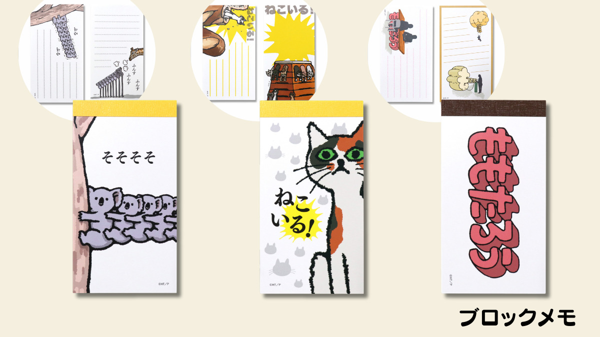 ただキャラクターを載せただけのグッズではありません。ページをめくるとふと、猫がいるあの驚きや、無表情なキャラクターが放つおもしろさを、文房具の中にしっかりと再現しました。