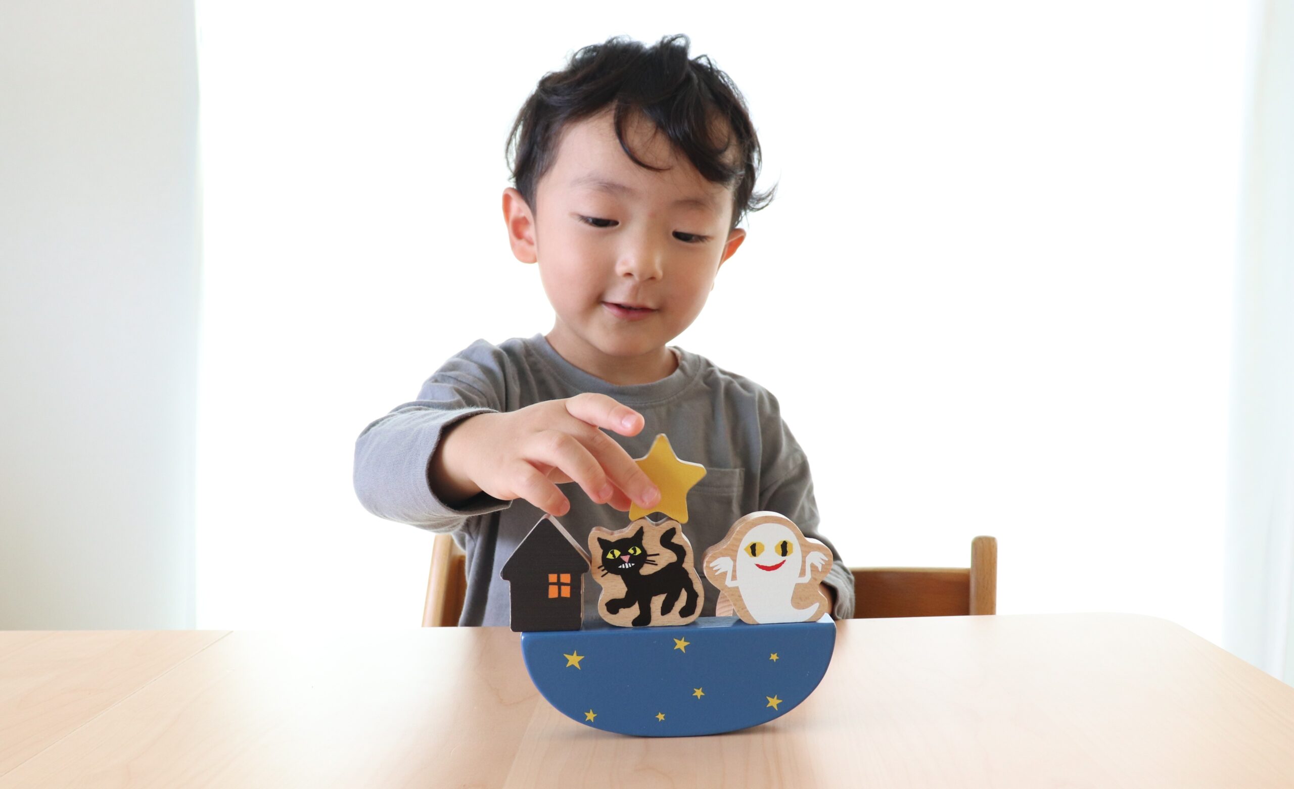 キャラクターを慎重にバランス台の上に積み上げて遊べるのはもちろん、物語のシーンを再現したり、その続きを想像して並べてみたりと、遊びながら自然と創造力も育まれます。